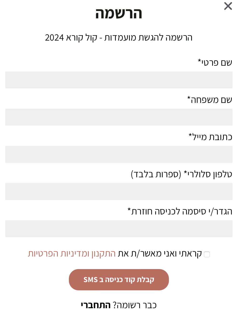 אם נרשמתן לאתר בעבר, תוכלו להתחבר למערכת על ידי לחיצה על כפתור "הגשת מועמדות" או על ידי לחיצה על כפתור ההתחברות מימין למעלה.